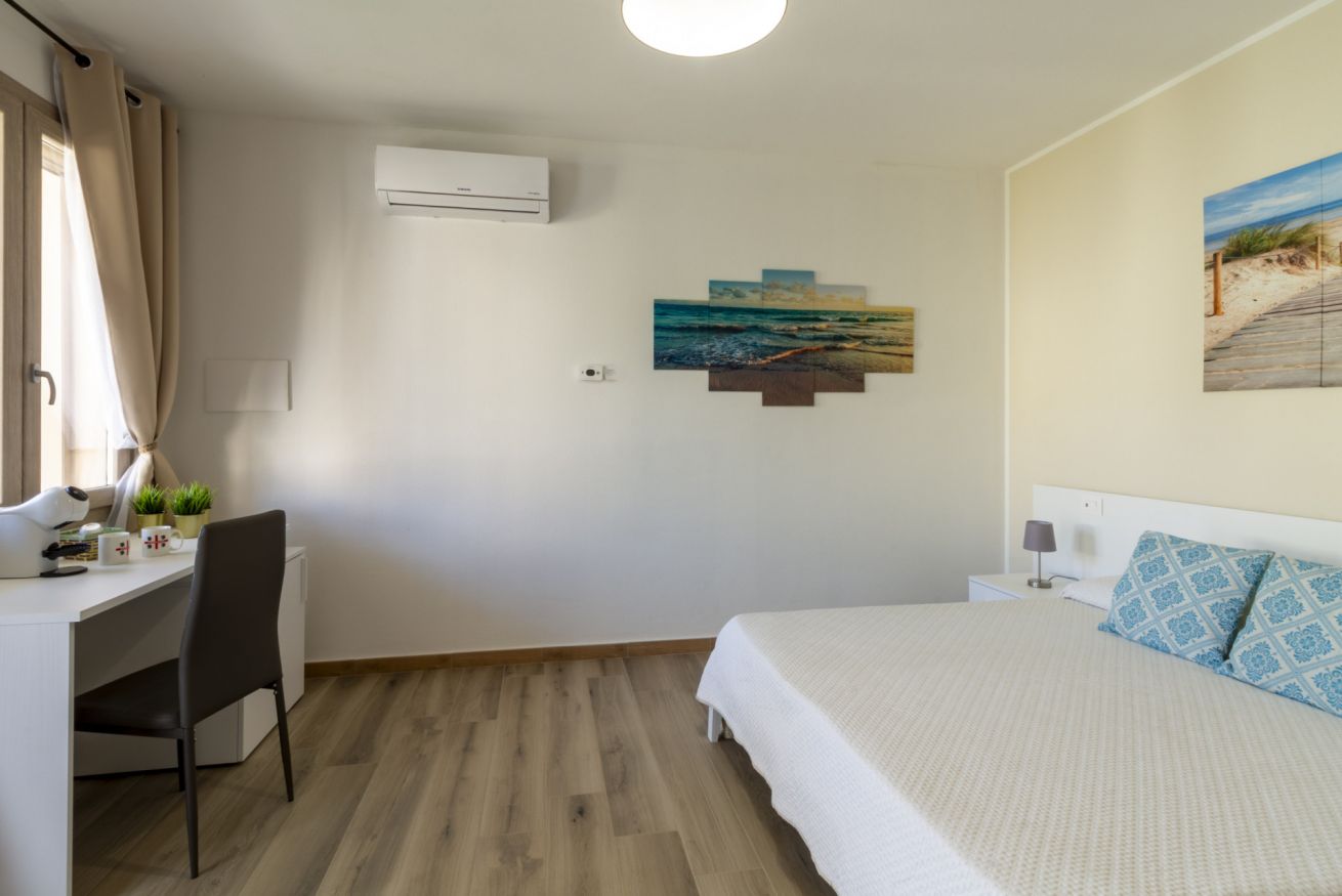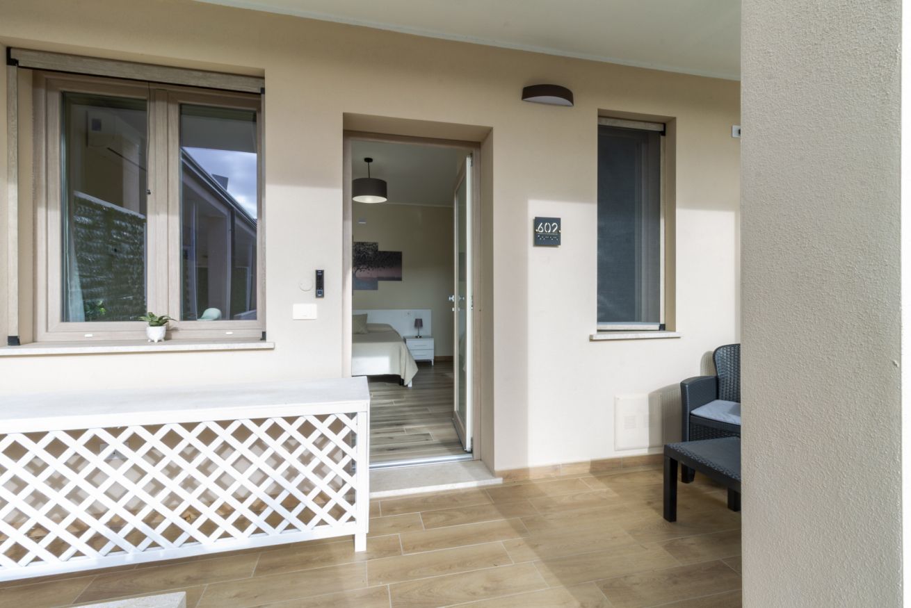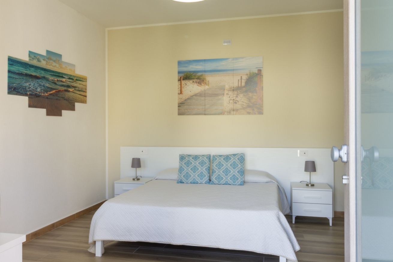 Disponiamo di 5 camere matrimoniali con bagno privato, tutte situate al piano terra e arredate con gusto moderno. Ogni camera ha un porticato privato che si affaccia su un ampio prato verde, ideale per rilassarsi dopo una giornata al mare, leggere un libro o gustare un aperitivo al tramonto.